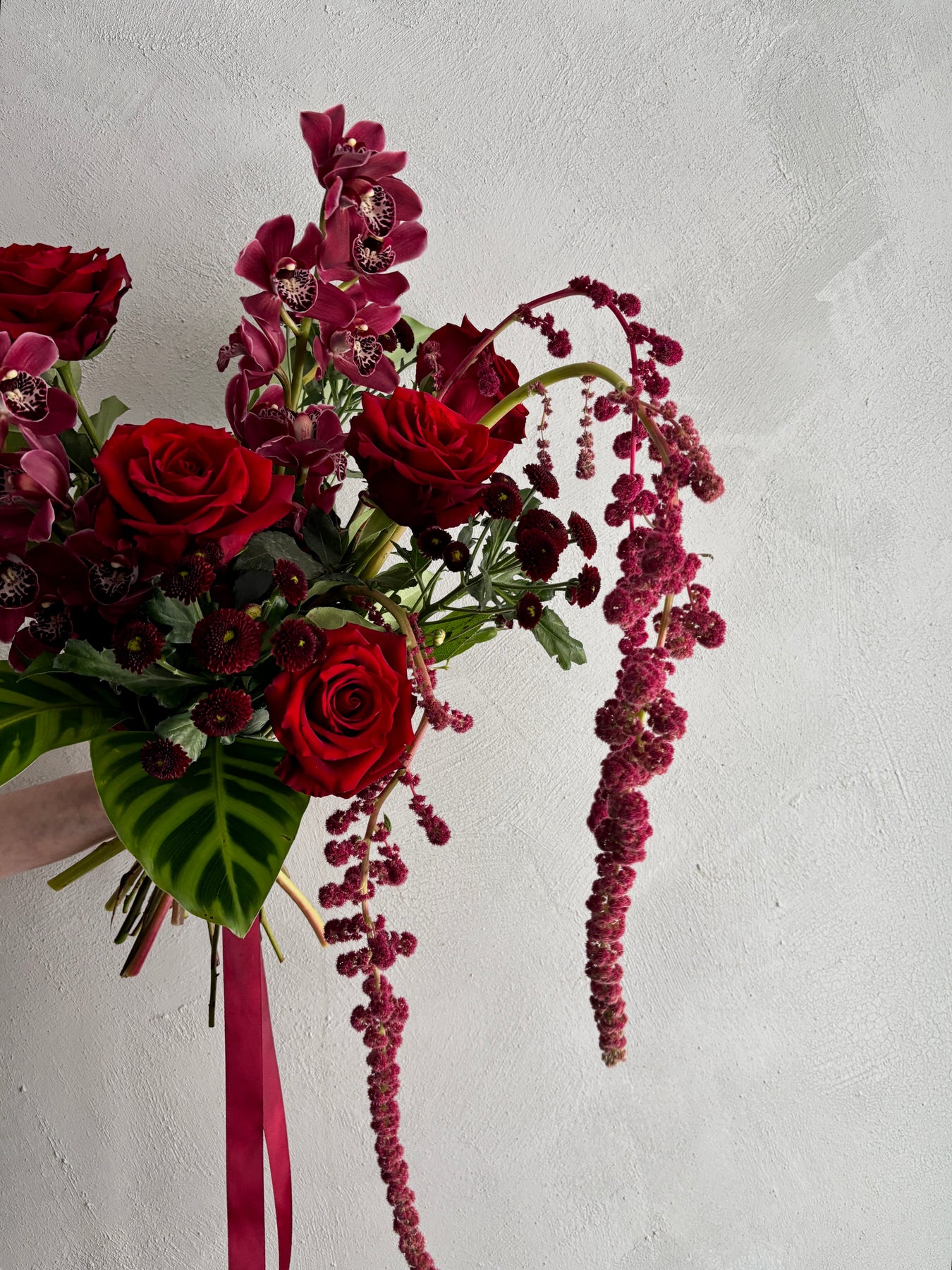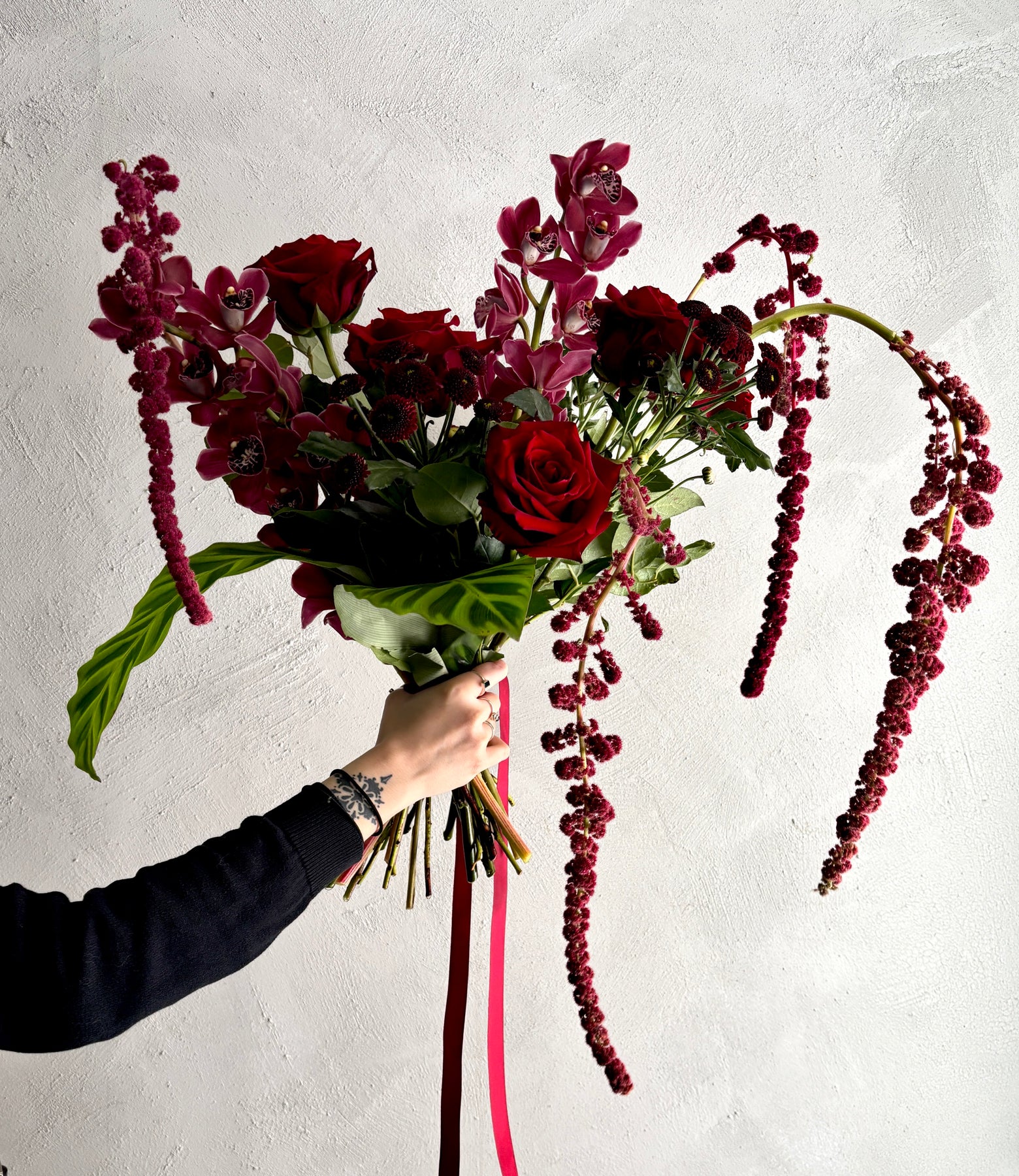 Bouquet aux teintes rouges.