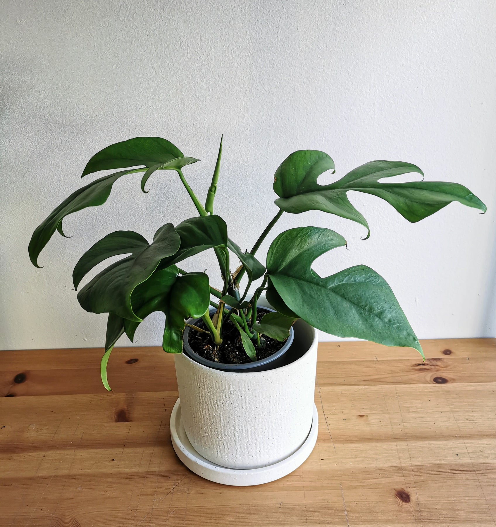 Cette superbe plante est une variété grimpante d'aracée. Dans la nature, elle s'agrippe aux arbres grâce à ses racines aériennes. Elle reproduira cette tendance grimpante dans nos maisons ! Elles sont magnifiques adossées à un mur et grimpant jusqu'au plafond ! Elles ont de très belles croissances lorsqu'elles ont un entretien adapté à leurs besoins.